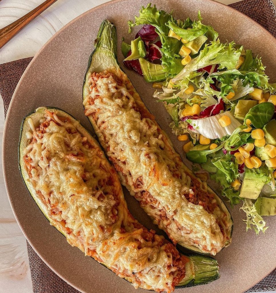 Aquí tenemos una receta bien nutrida y muy saludable: los calabacines rellenos de carne picada.